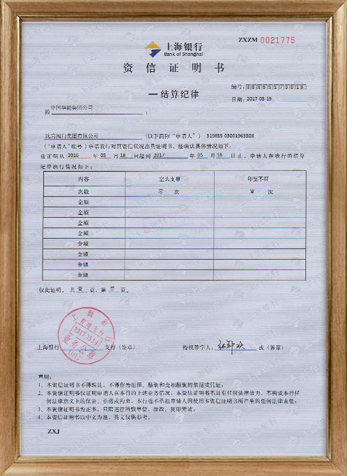 上海銀行資信證明書