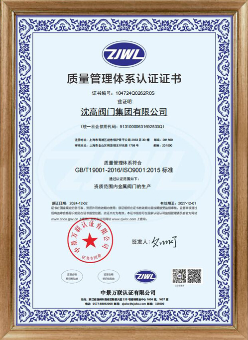 質(zhì)量管理體系認(rèn)證證書