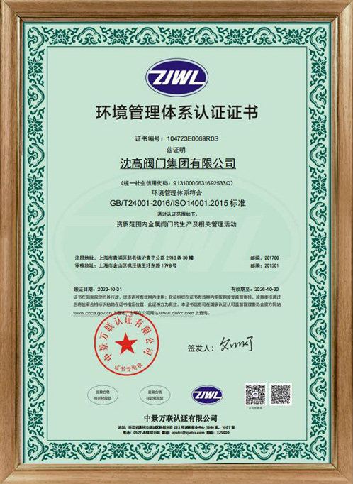 環(huán)境管理體系認(rèn)證證書