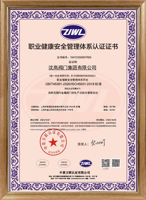 職業(yè)健康安全管理體系認(rèn)證證書